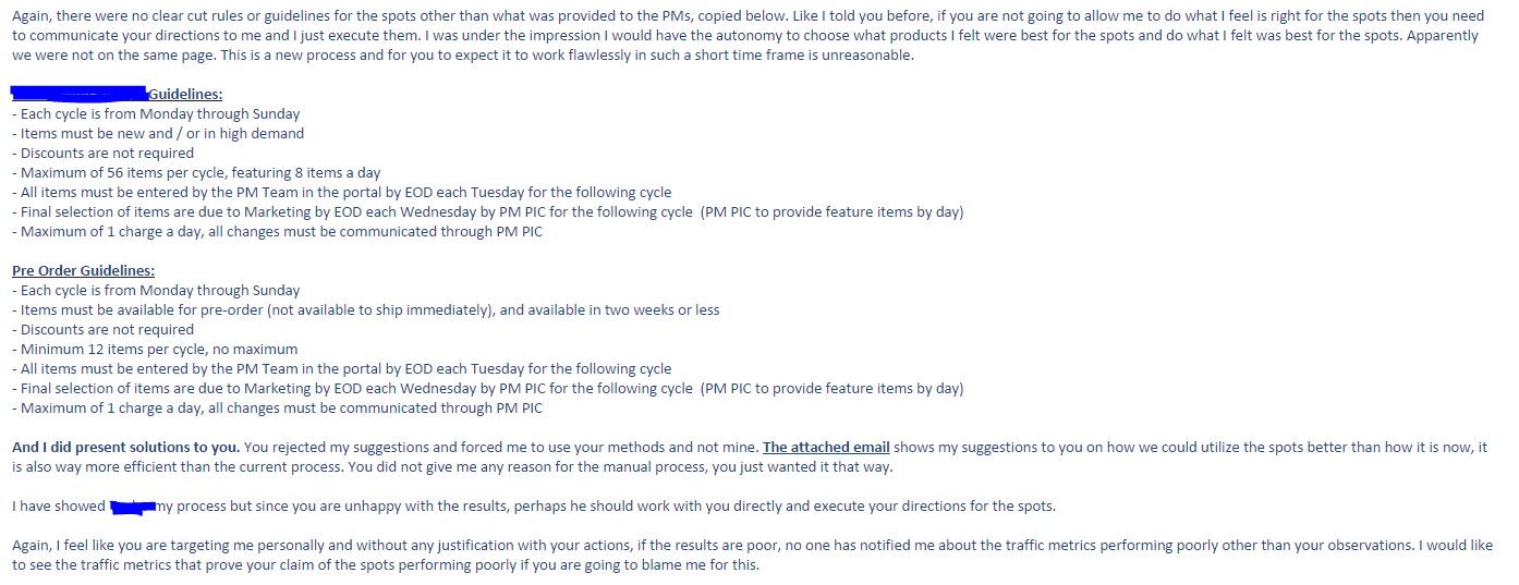 As in, send out 100 emails every week asking people to submit items into a portal then sort the portal, then screen it, check it for inventory, price check it, then submit it to be posted. She was baffled that I wasn’t honored and grateful for this wonderful opportunity. Here is the actual email I sent to her in response to her saying I did a poor job (I saved this in the event they tried to fire me for some bullshit, I also copied HR):